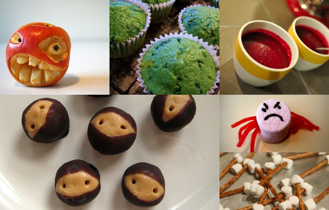 You’ll need red jelly strings and an edible ink pen to make this Halloween snack. First make a hole through a marshmallow and push the jelly strings with the wrong end of a teaspoon, then draw the scariest face you can think of. Feel free to play and draw an entire set of gruesome emotions on your marshmallow’s powdered face.