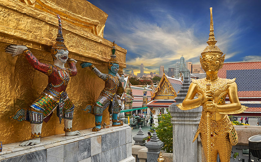 Start your tour of the city by visiting the Grand Palace where you can find Wat Phra Kaew Temple which contains the Emerald Buddha.