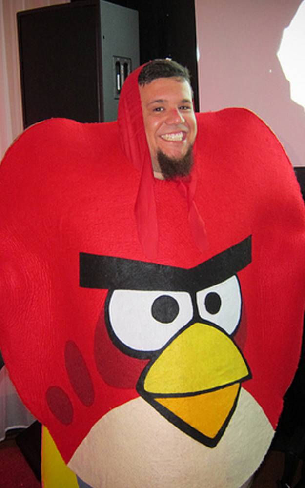 The beauty of dressing up as these bad-tempered digital characters is that it can be done cheaply – think face paint, a cardboard beak and a very cross expression (note: those who have trouble frowning for long periods of time may want to paint their eyebrows on diagonally to achieve the effect). On the other hand, you could splash out on a body suit like this guy.