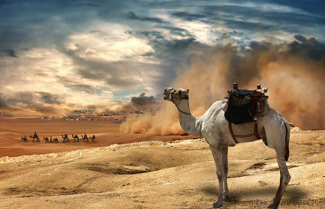 Despite the harsh conditions of the deserts, some people have made deserts their home for thousands of years. The Bedoiuns, the Tuaregs and Pueblo people are some of them. The photo above represents a poor caravan in Tunisia, circa 1904.