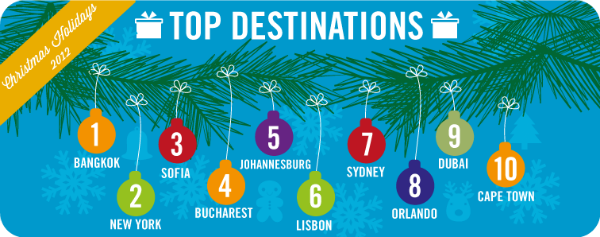 Though the Christmas holidays are traditionally a time to celebrate close to home with friends and family, our recent study reveals that the British that plan on catching a flight during the 2012 holiday season, whether it be with the traditional airlines or low cost, aren’t staying close to home.