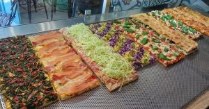 A visit to Rome is not complete without pizza al taglio. Invented in Rome, pizza al taglio (literally ‘by the cut’) lets you order pieces of your favourite pizza by weight. When ordering a normal pizza in Rome, it’s difficult to decide which one to get, but with Pizza al taglio, you can get a taste of them all! You say how large or small you want the square of pizza to be, and how many different pizzas you want to try. Heaven.