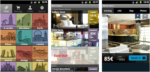 Available for Android and iPhone, the app helps you find free rooms in hotels. The  app lets you search by city (it covers the major cities in Spain, plus a few big European capitals) and by price.