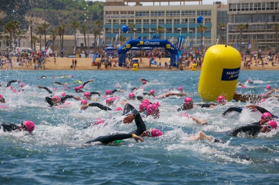 The III eDreams Marnaton Cup starts off with a bang after this Saturday’s successful Marnaton in Barcelona (I Marnaton eDreams Barcelona). The event took place in Catalonia’s capital and was received with a lot of enthusiasm both by locals and tourists, with over 700 swimmers participating in the challenge and a great number of curious visitors stopping by to experience the excitement first-hand. Even the sun played its part, and the warm water temperature of 17 º C persuaded many brave individuals to go swimming without a wetsuit!