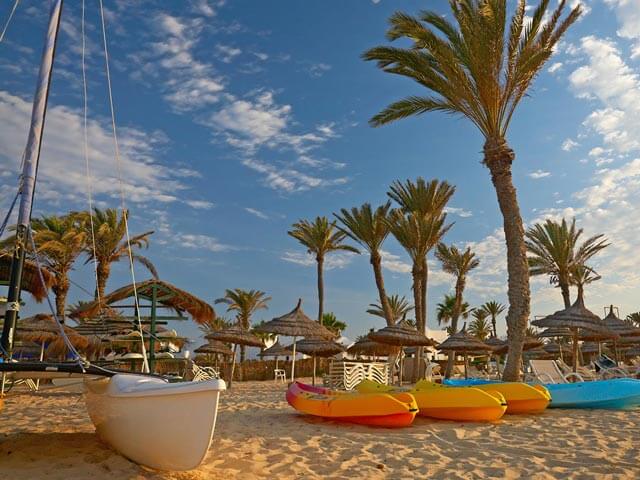 Dive in turquoise waters, feel the fine sand between your toes, rest in the shade of a palm tree, discover the coastline by boat, admire the sunset on the beach... If your ideal holiday resembles this description, then look no further and start planning your trip to Djerba (DJE) in Tunisia now. Like a modern-day Robinson Crusoe, you will appreciate the tranquility of a stay on an island, but you will also be able to enjoy a large number of services and activities to enhance your holiday. You will be able to alternate between swimming, a nap in the sun on the beach, walks along the coast, water sports or evenings on a terrace. Djerba offers many possibilities to satisfy the tastes of all types of travellers, so treat yourself to a trip there to discover them!